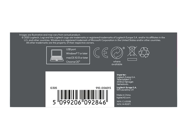 Logitech G G305 - Hiiri - optinen - 6 painiketta - langaton - 2.4 GHz - USB johdoton vastaanotin - sininen
