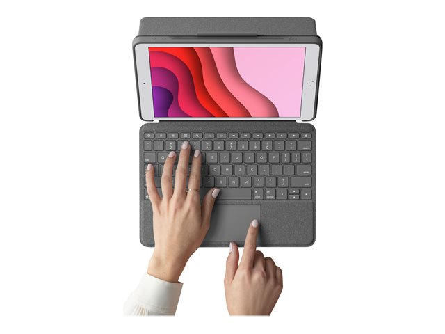 Logitech Combo Touch - Näppäimistö- ja kalvokotelo - sekä kosketuslevy - taustavalaistu - Apple Smart connector - QWERTY - espanjalainen - grafiitti malleihin Apple 10.2-inch iPad (7. sukupolvi, 8. sukupolvi, 9. sukupolvi)