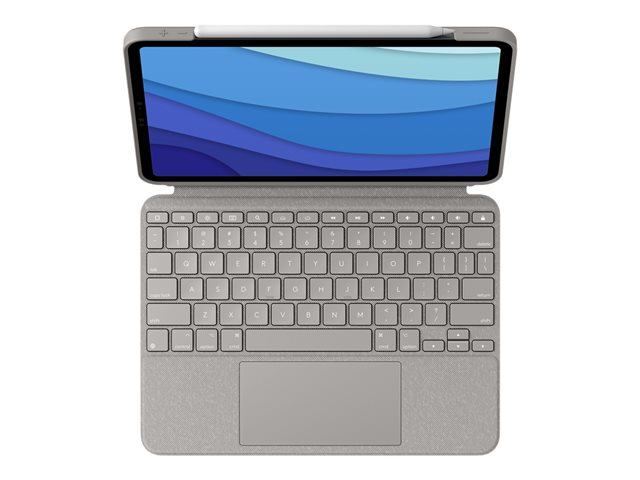 Logitech Combo Touch - Näppäimistö- ja kalvokotelo - sekä kosketuslevy - taustavalaistu - Apple Smart connector - QWERTZ - Sveitsi - hiekka malleihin Apple 11-inch iPad Pro (1. laitesukupolvi, 2. sukupolvi, 3. sukupolvi)