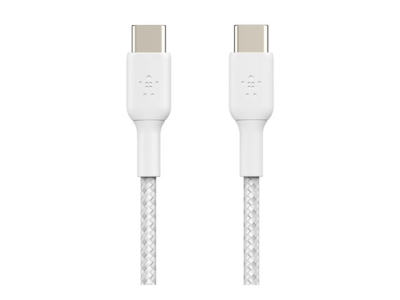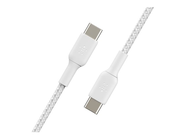 Belkin BoostCharge - USB-kaapeli - 24 pin USB-C (uros) to 24 pin USB-C (uros) - USB 2.0 - 3 A - 1 m - USB Power Delivery (60W) - valkoinen (pakkaus sisältää 2)