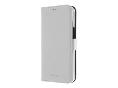 Insmat Exclusive - Läppäkansi matkapuhelimelle - nahka, polykarbonaatti, kartonki + paperi + alumiinifolio, puuvillaompeleet - valkoinen malleihin Apple iPhone 14 Pro 650-3119