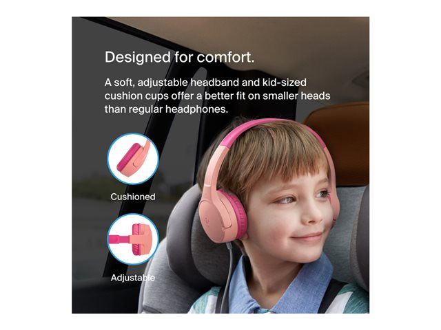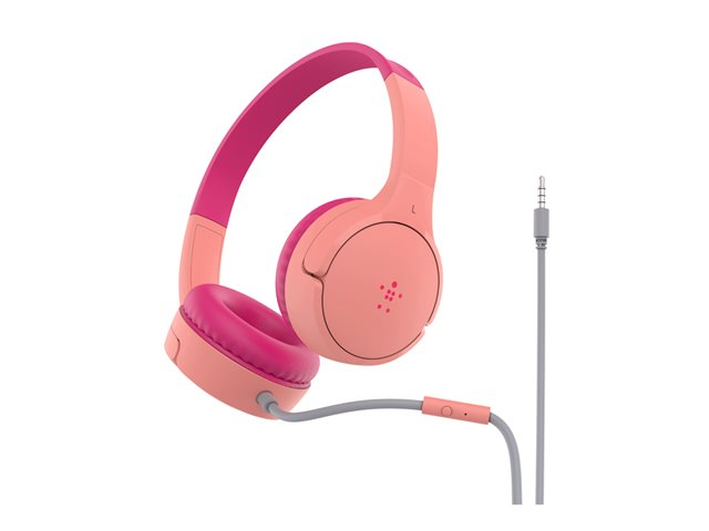 Belkin SoundForm Mini - Kuulokkeet mikrofonilla varustettu - korvien päällä - langallinen - 3,5 mm jakkiliitin - vaaleanpunainen AUD004BTPK