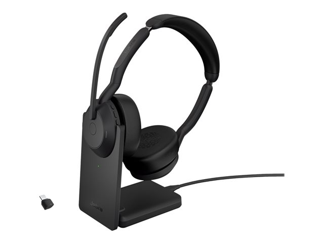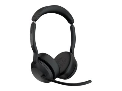 Jabra Evolve2 55 UC Stereo - Kuulokkeet + mikrofoni - korvien päällä - Bluetooth - langaton - aktiivinen melunpoisto - USB-C - musta - sekä latausalusta - Zoom-sertifioitu, Cisco Webex Certified, Optimoitu Microsoft Teamsille, Alcatel-Lucent -sertifioitu, Avaya-sertifioitu, Unify-sertifioitu, MFi-sertifioitu, Amazon Chime -sertifioitu 25599-989-889