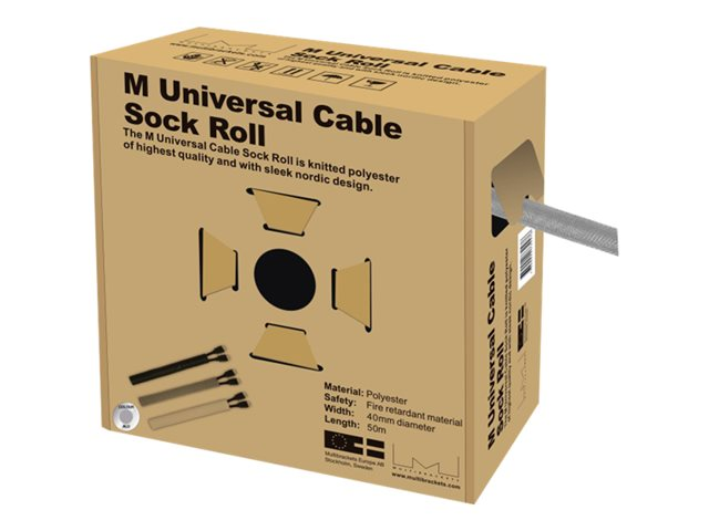 Multibrackets M Universal Cable Sock Roll 40 mm x 50 m - Kaapelijärjestäjä - hopea